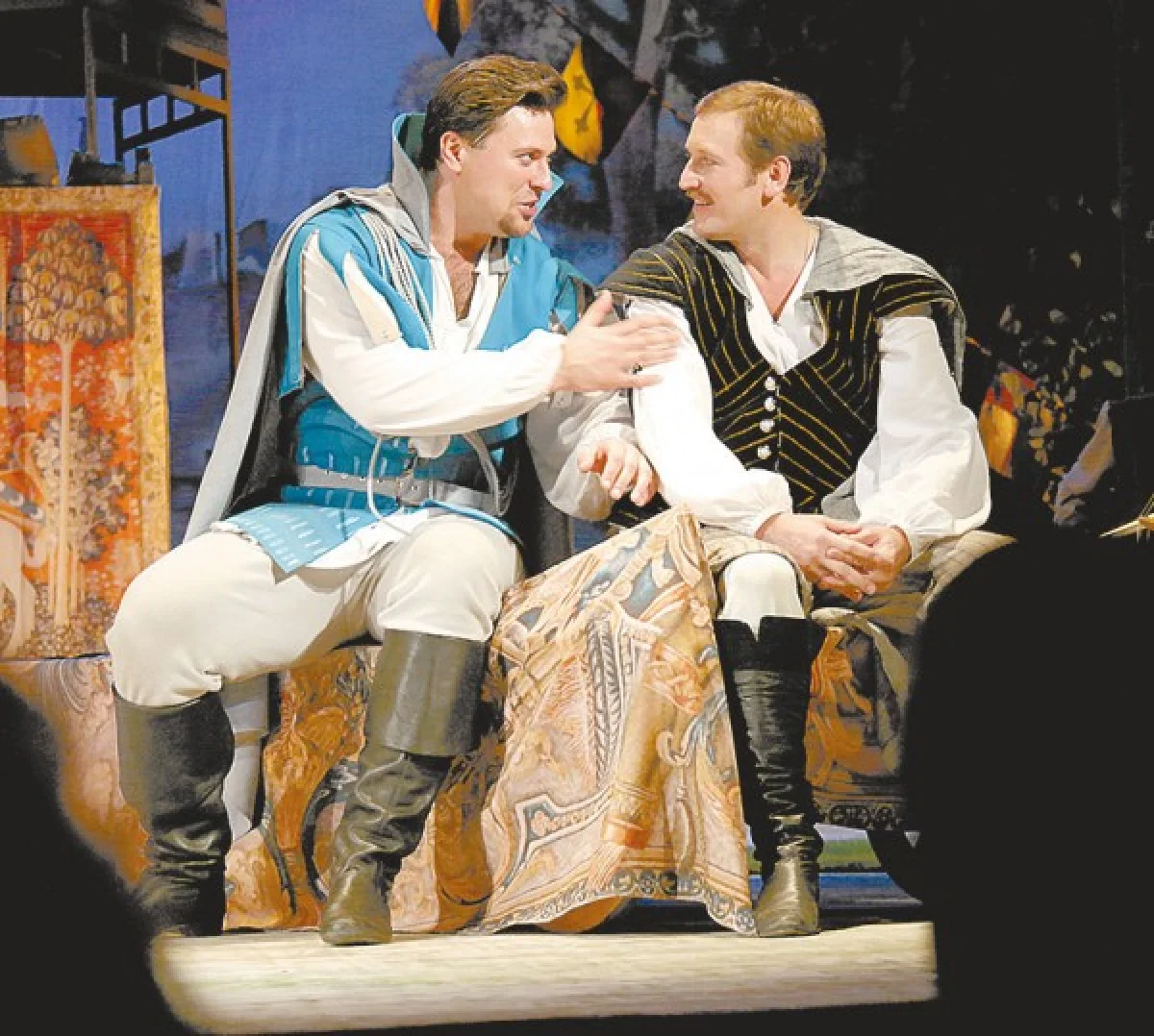 Ген. Ты мысли угадал мои. Итак, задумали отметить юбилей Шекспира нашего Вильяма комедией веселой, что написал четыреста годков тому. Руководить затеей пригласили Бейрака Анатолия, кто классике привержен неизменно и зрителем любим. И вот уже Оксана Богданович костюмчики пошила, Некрасова Людмила, художник-постановщик, уютной декорацией снабдила нашу сцену, и даже музыка заказана специально Ирине Кузнецовой (что в Ярославле проживает постоянно). Не в первый, впрочем, раз актеры театра нашего поют самостоятельно в спектаклях Бейрака. Возьмем, к примеру, «Близнецов венецианских».