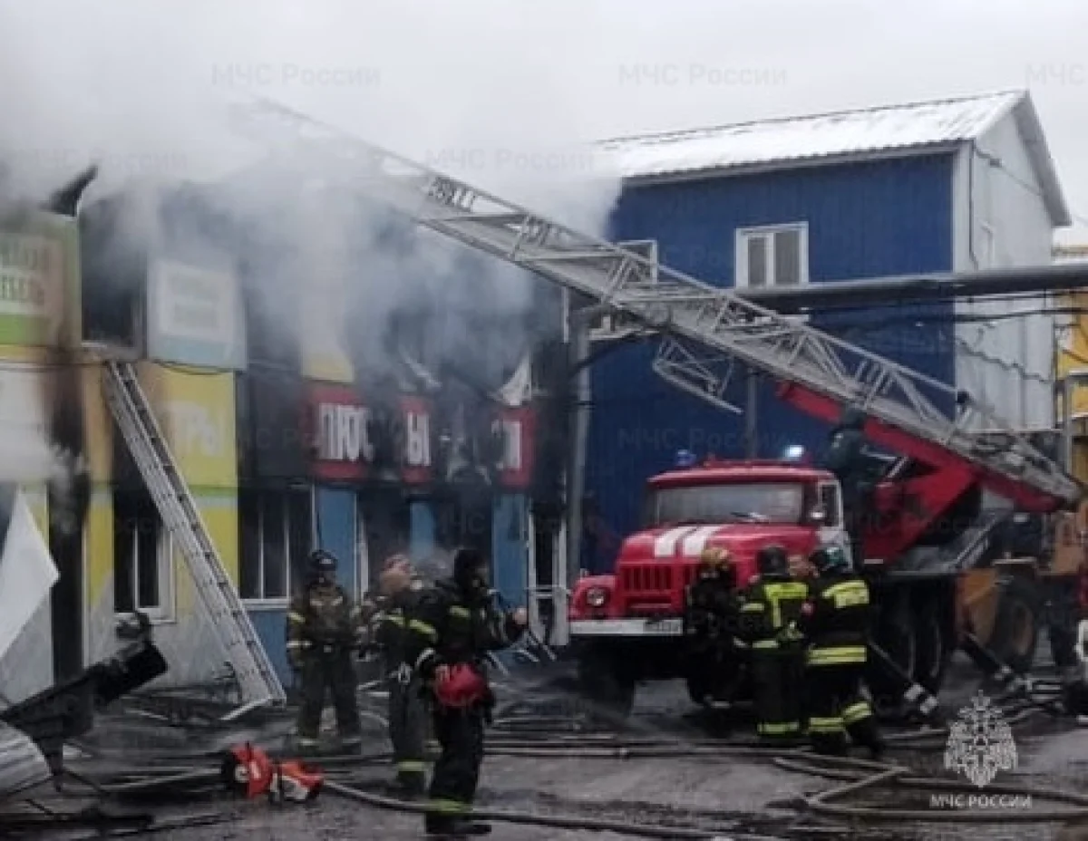 Горел магазин «Светория» на 101 километре трассы М3 «Украина».