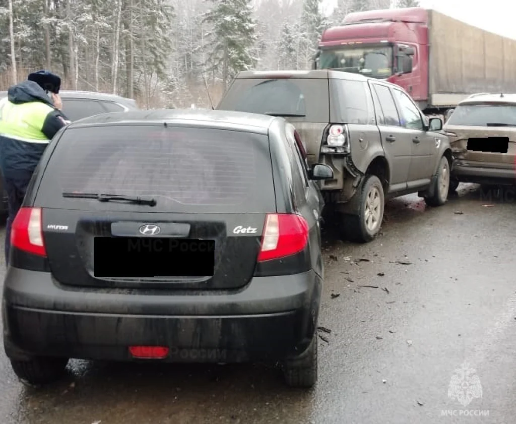 По предварительным данным, водитель «Хендай Гетц» не соблюдала дистанцию и врезалась в «Ленд Ровер», а тот отлетел в «Шкоду».