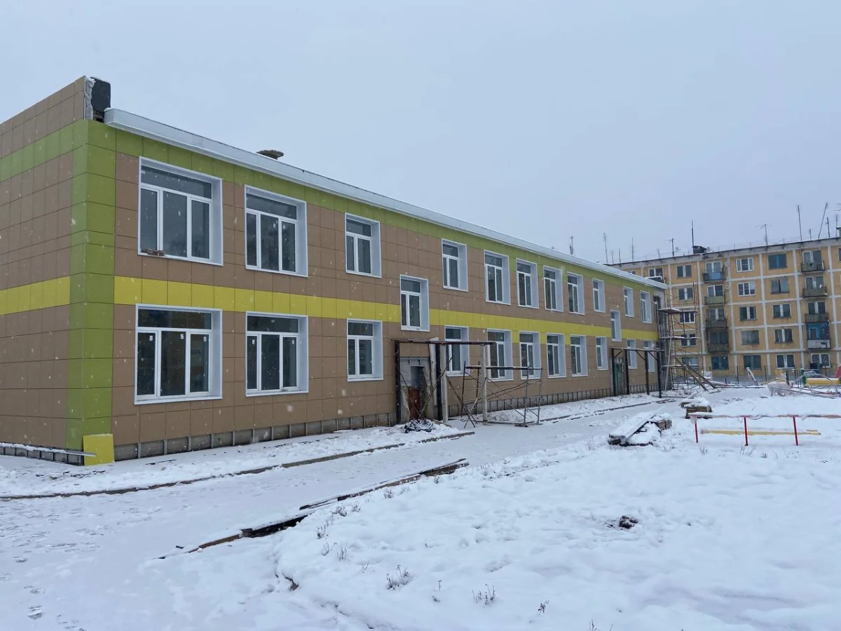 В садике запустили отопление, идет отделка, завершаются работы с фасадом.