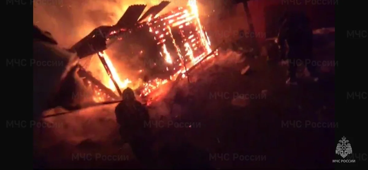 Огонь полностью уничтожил деревянную постройку.