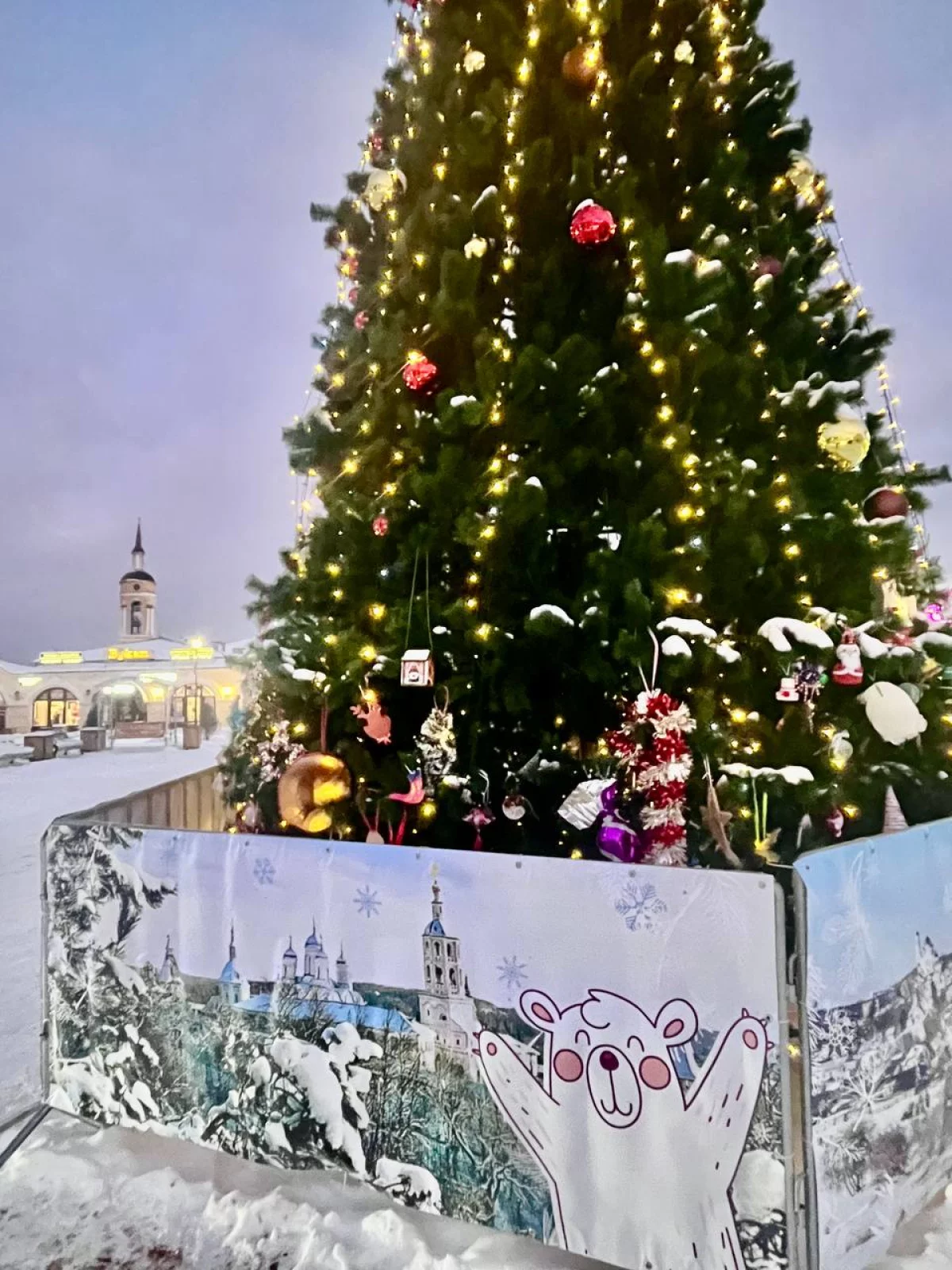 А вокруг елки установили ограждение с фотографиями Боровска.