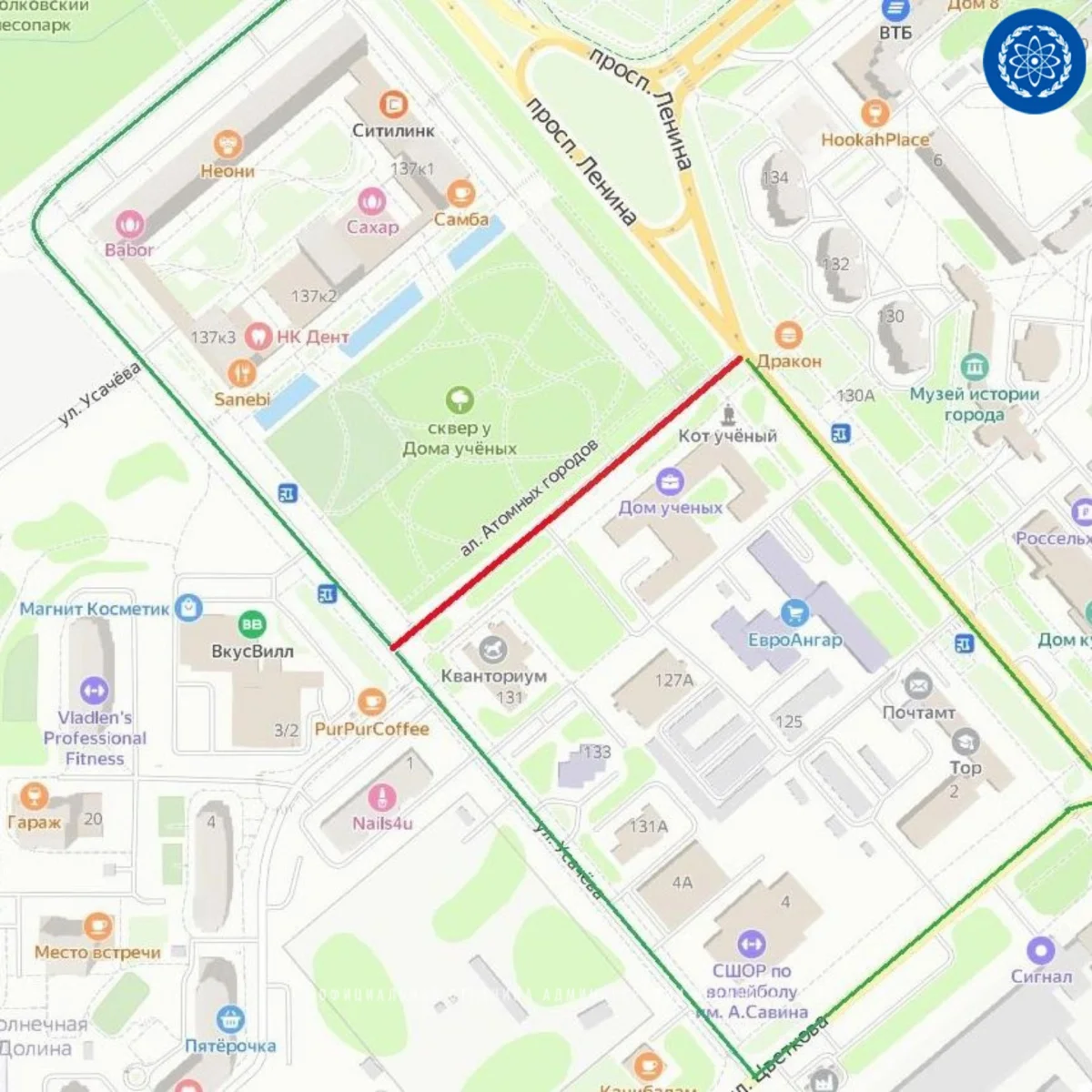 Проехать нельзя будет от пересечения с проспектом Ленина до пересечения с улицей Усачёва.
