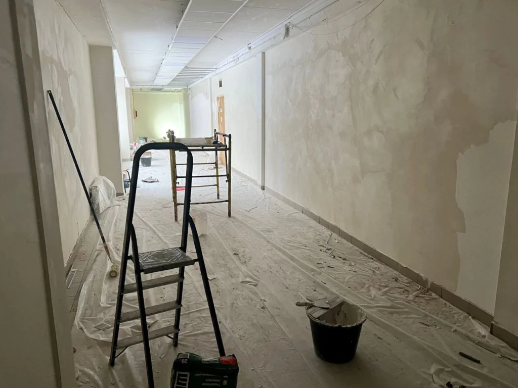 На данный момент завершился ремонт одной из рекреаций первого этажа. Проведены замена напольного покрытия, отделка стен, смонтированы подвесной потолок и новое освещение.