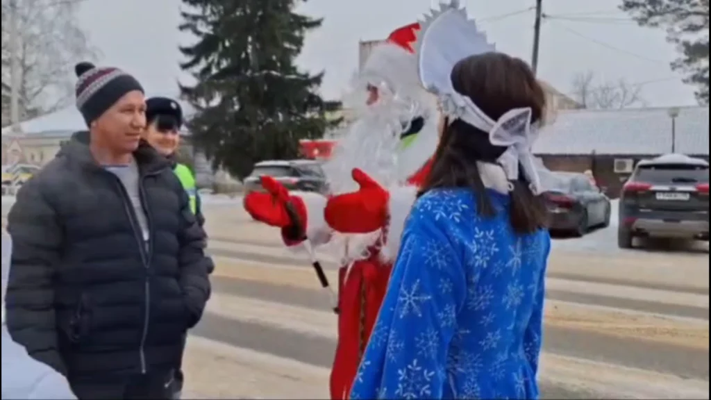 В Калужской области на дорогу вышел полицейский Дед Мороз