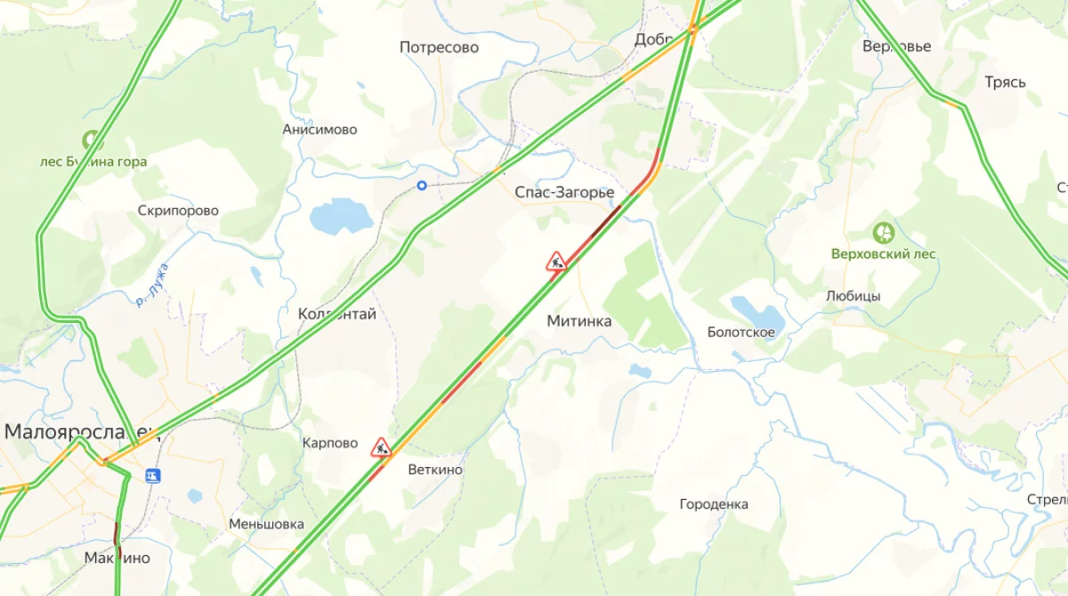 Пробка собралась на трассе между Обнинском и Малоярославцем