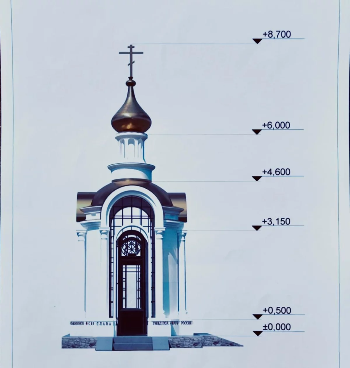 - Эскиз часовни представил Протоиерей Сергий Вишняков, - пояснил Лежнин. - Это не капитальное строение, по архитектурному решению часовня открыта с трех сторон, ее площадь - примерно 4 на 4 метра, высота с куполом - около 9 метров.