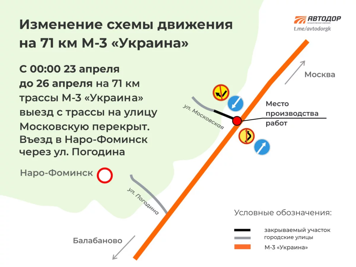 В четверг, 17 апреля, «Автодор» опубликовал важную информацию для жителей Обнинска, которые ездят в Наро-Фоминск.