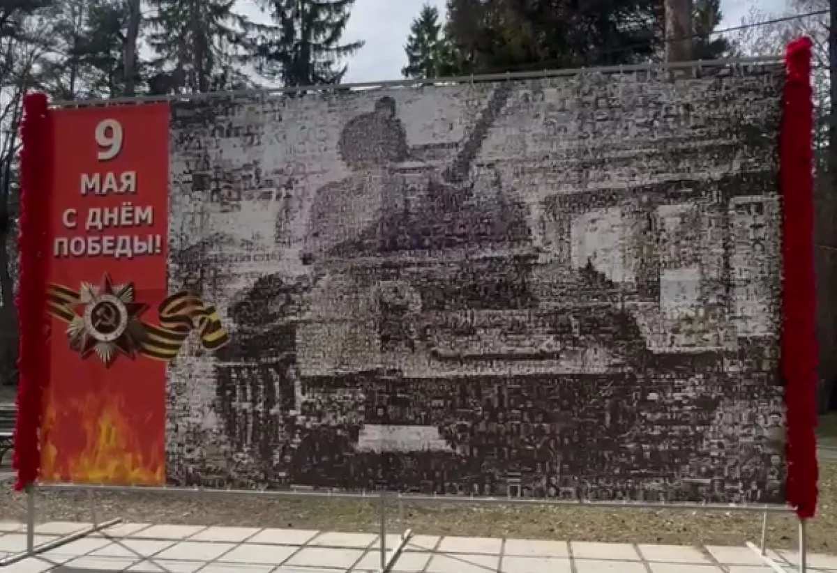 Композиция создана из сотен фотографий участников Великой Отечественной войны: вблизи можно рассмотреть лица героев, а на расстоянии – силуэт танка, ставшего символом Победы.