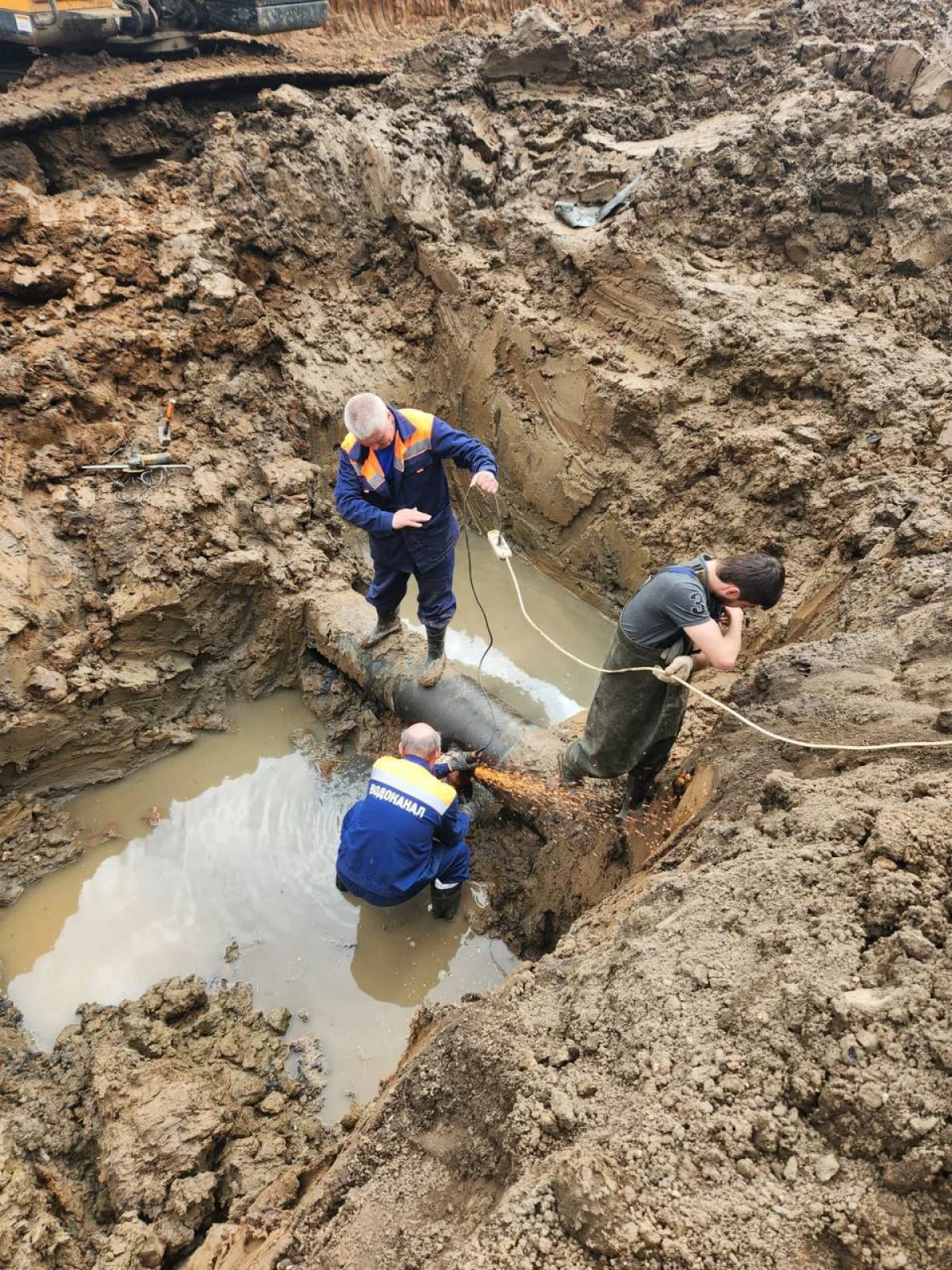 В Балабаново начали ремонтировать поврежденную трубу