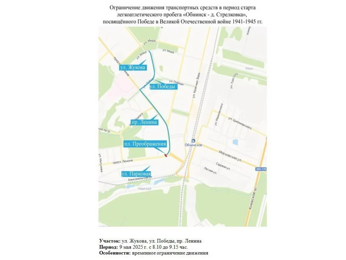 Улицы Обнинска перекроют 6-9 мая