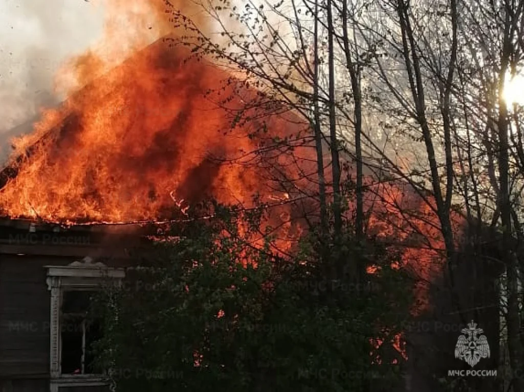Огонь практически полностью уничтожил деревянную постройку.