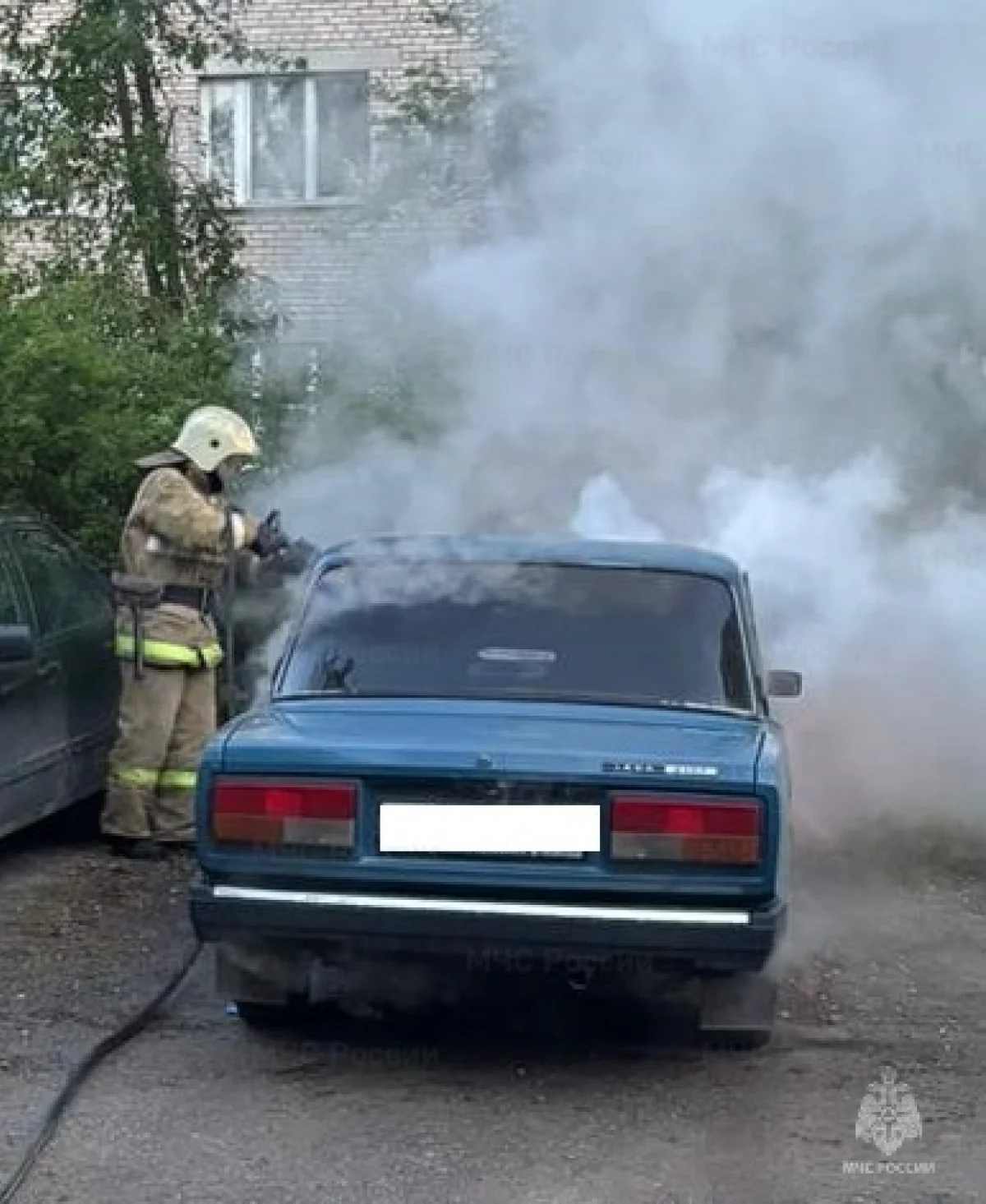 Легковушка загорелась у подъезда дома на улице Гурьянова.