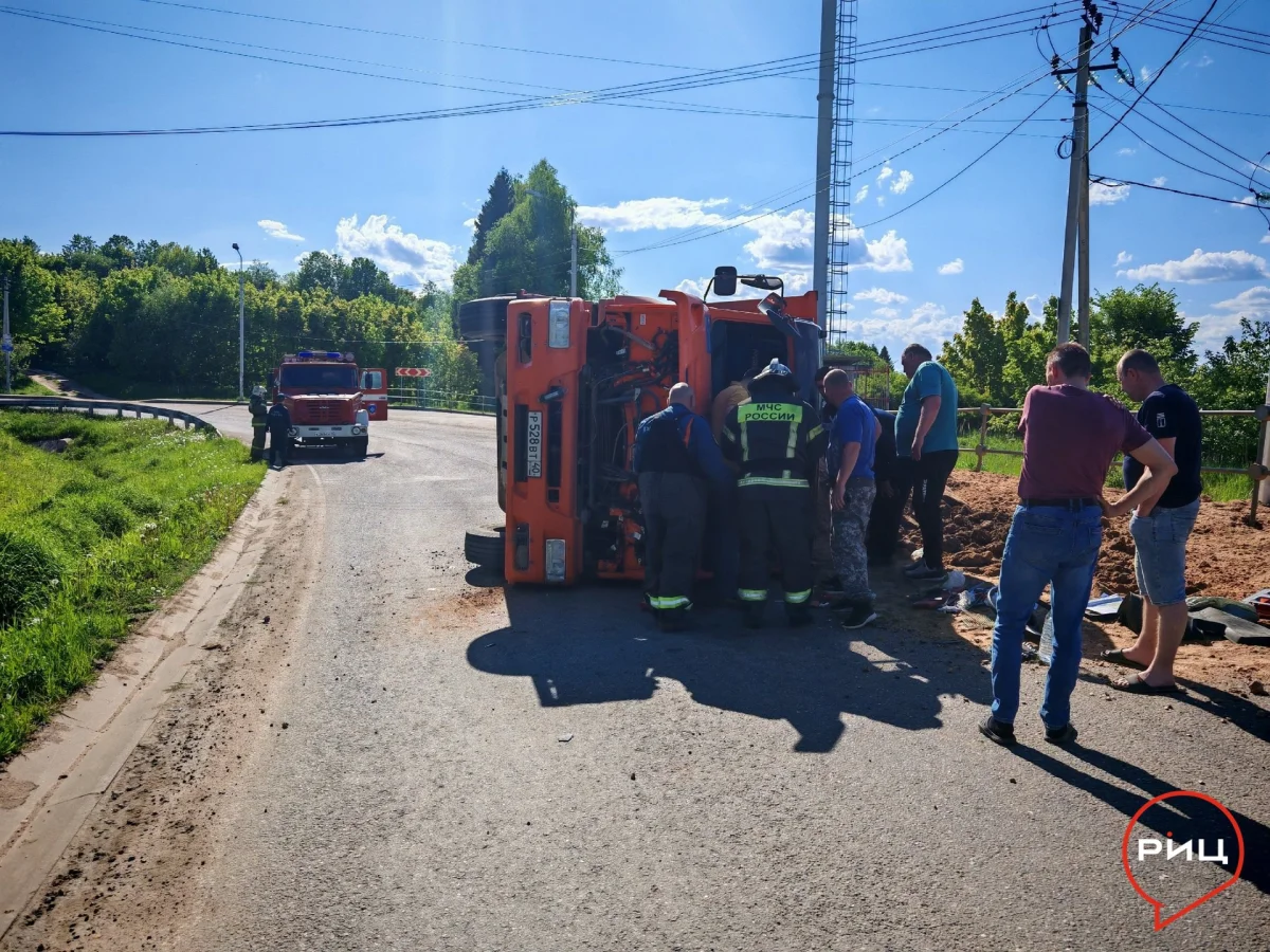 Грузовик с песком перевернулся в Калужской области