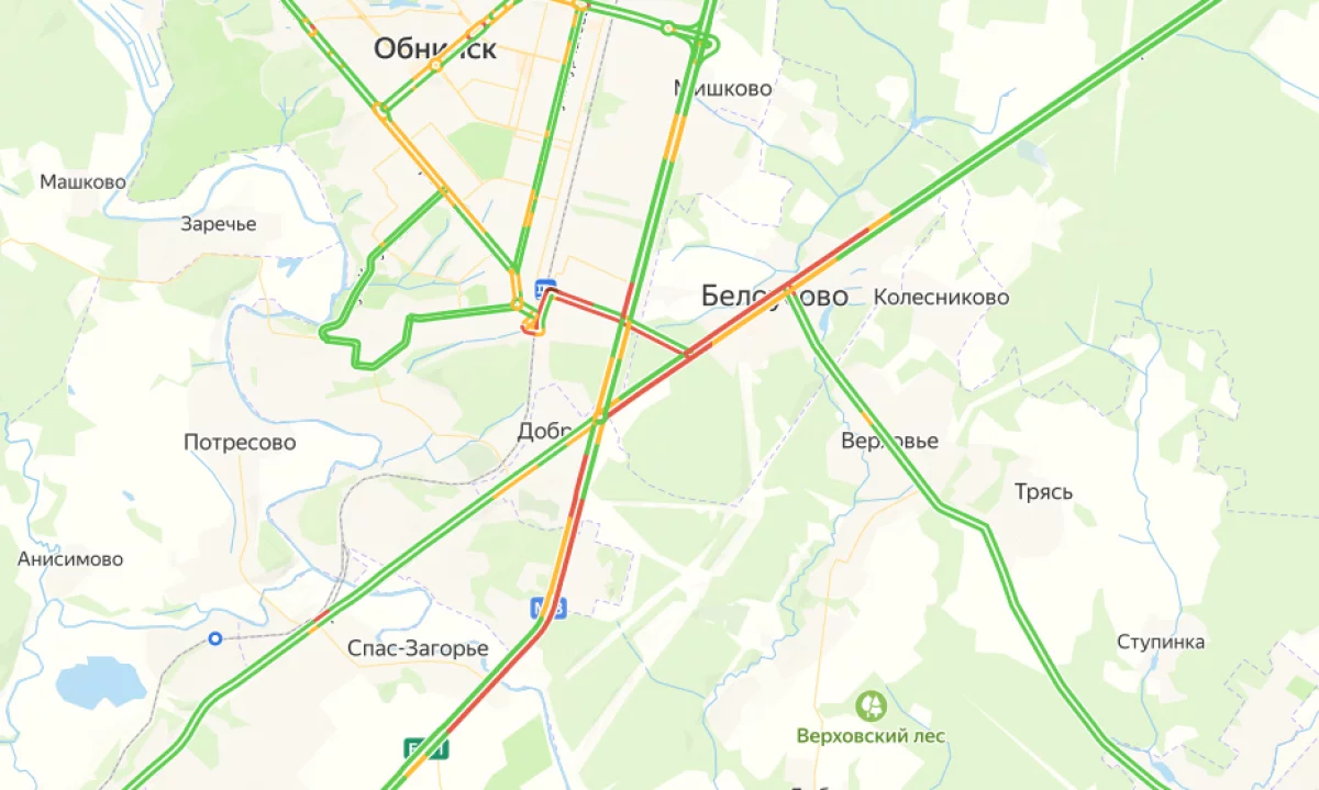 На трассе А130 затор наблюдается между Белоусово и деревней Доброе.