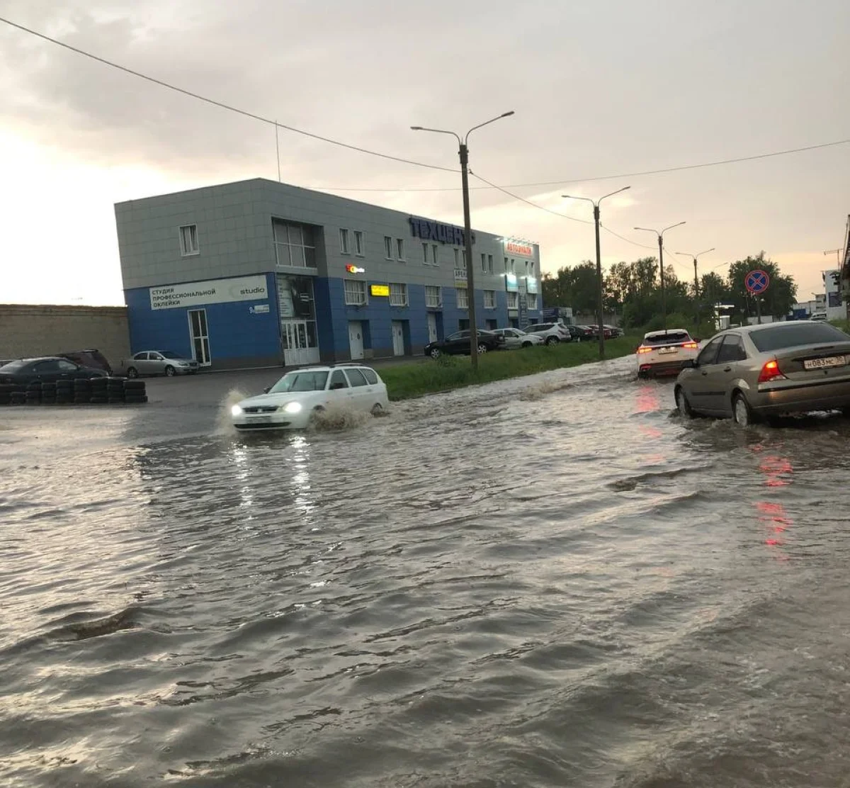 В Обнинске после дождя на дороге образуется река