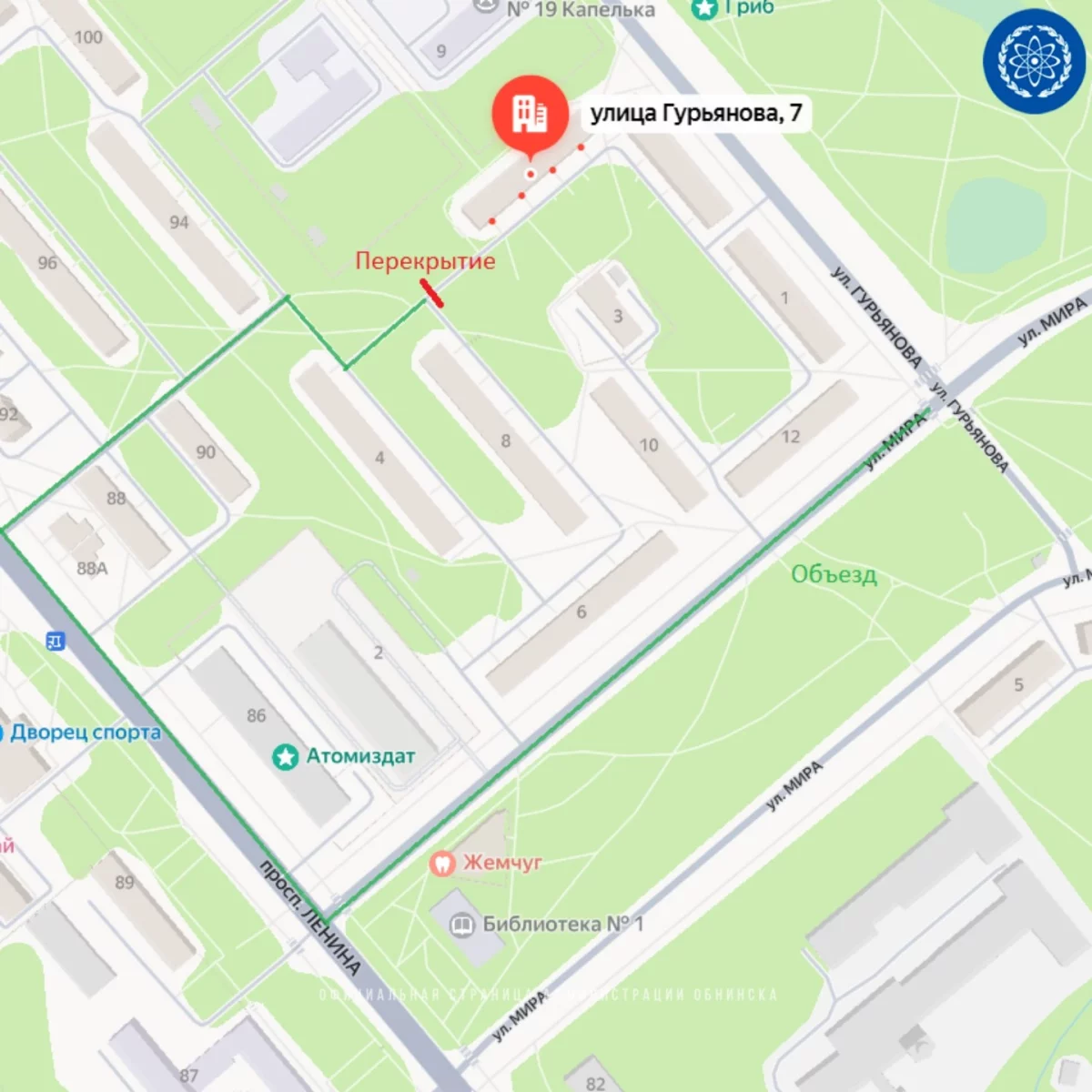 В Обнинске перекроют сквозной проезд на улице Гурьянова