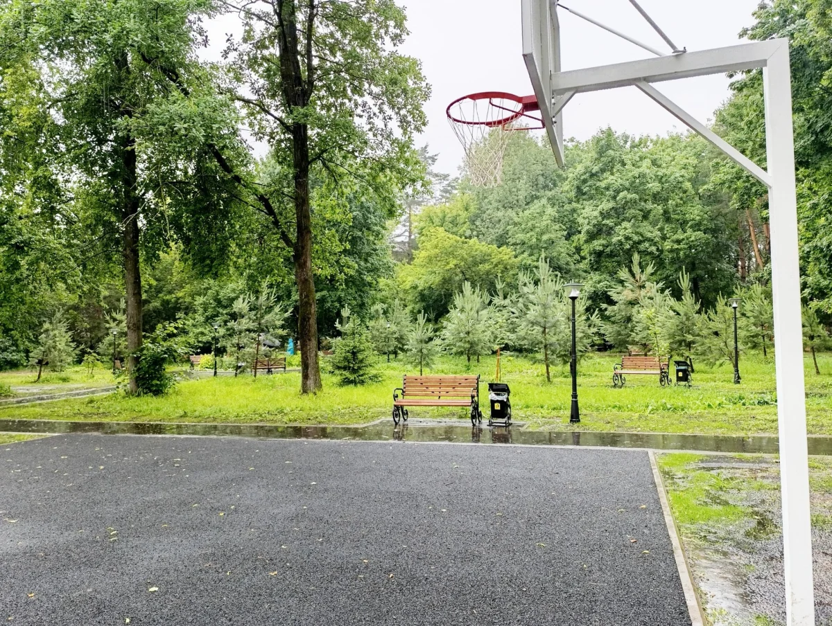 Также смонтирован стол для настольного тенниса, спортивное и детское игровое оборудование, обустроена баскетбольная площадка.
