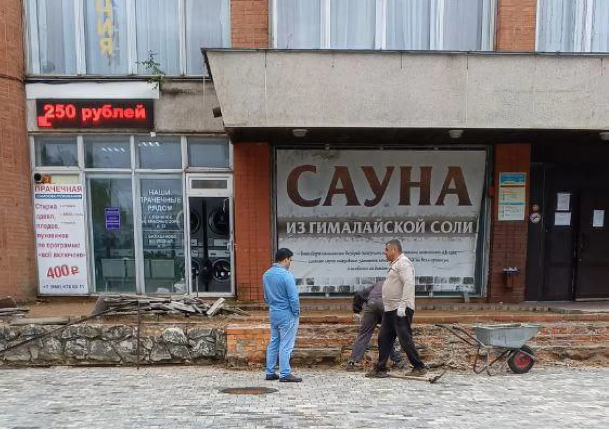 В Обнинске начали ремонтировать крыльцо здания Оздоровительных бань