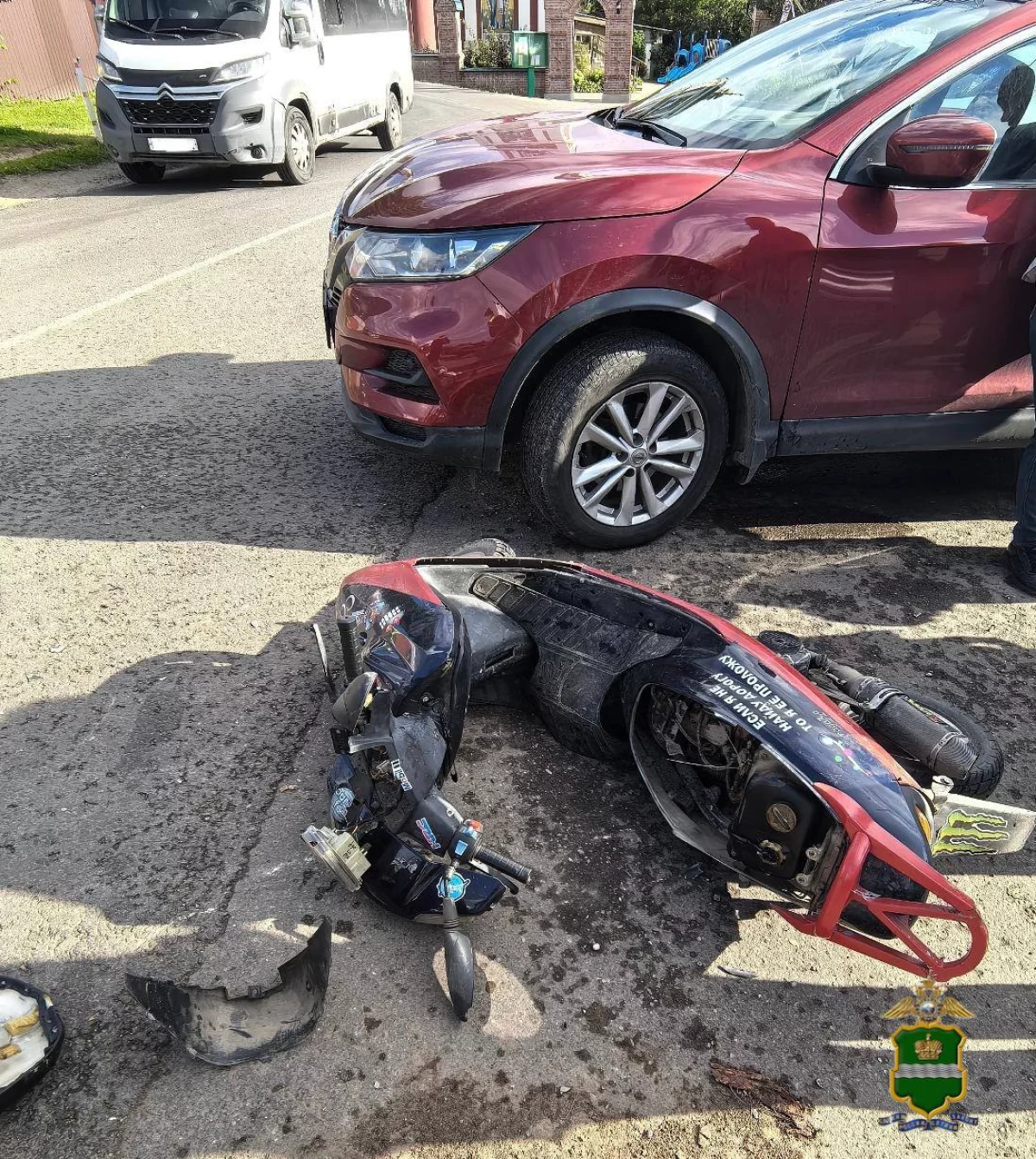 По предварительной информации, 52-летняя женщина на «Ниссане» выезжала со двора, поворачивала налево и врезалась в скутер.