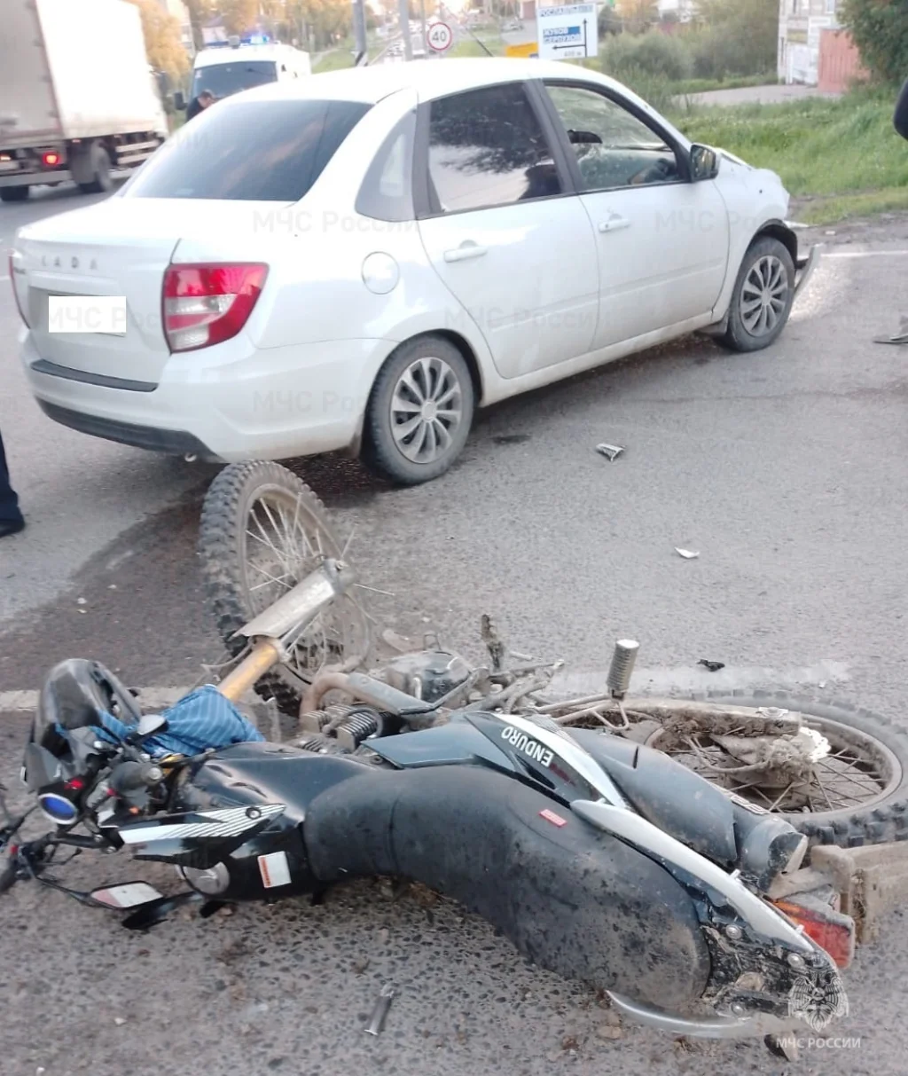 На улице Московской около 19:00 столкнулись байкер на «Мотоленде» и легковой автомобиль «Лада Гранта».