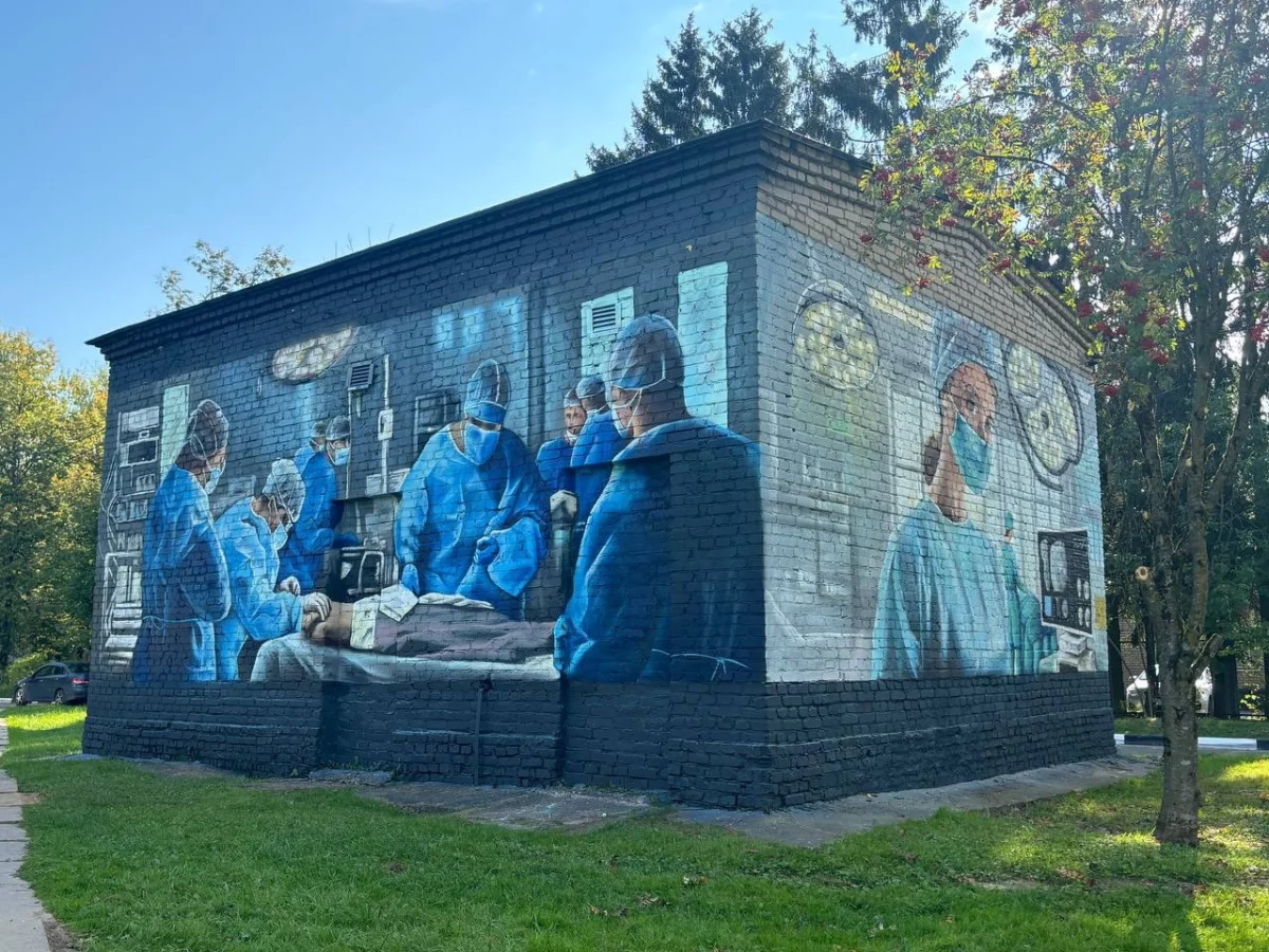 Художники расписали стены одного из зданий на территории Клинической больницы № 8, сообщили на официальной странице медицинского учреждения в «ВКонтакте».