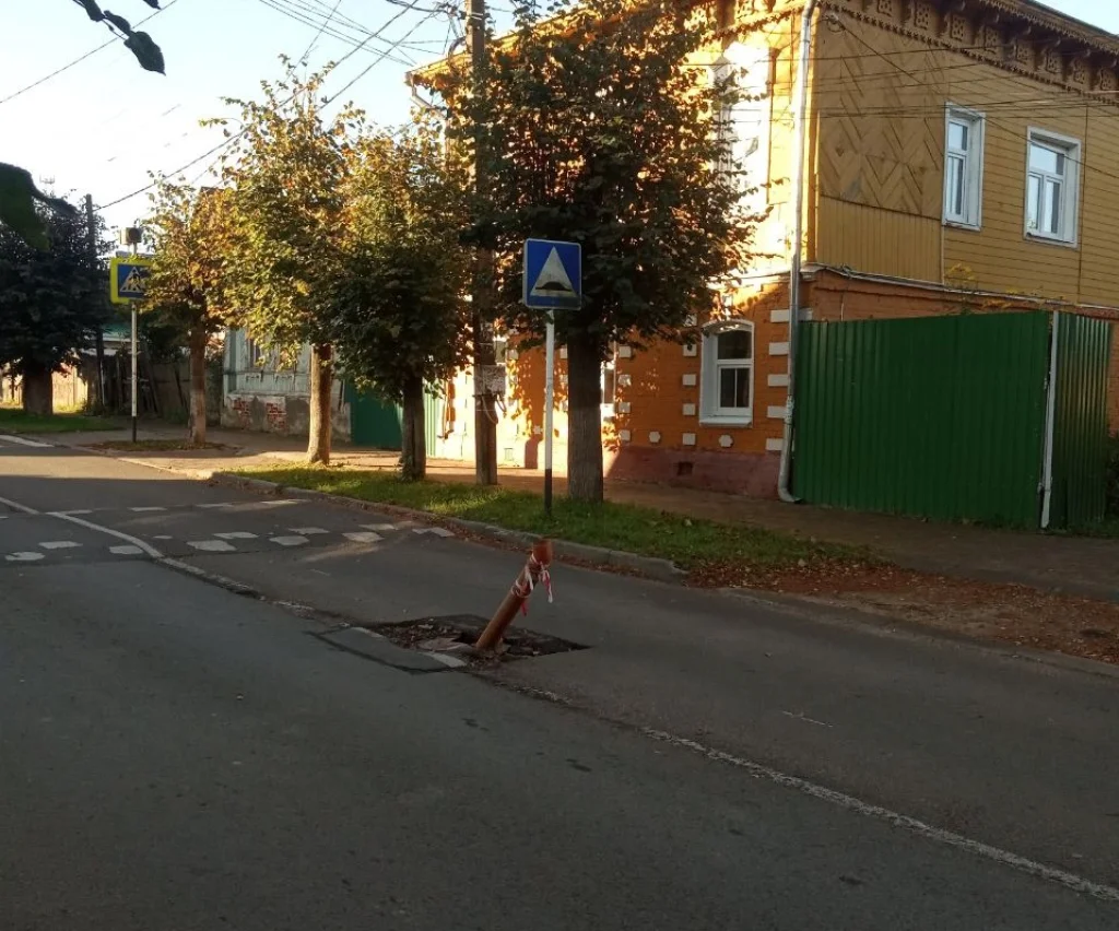 - Просьба решить вопрос по поводу сломанного люка на проезжей части. Город Боровск, улица Володарского, 14, здание детской музыкальной школы. Люк несколько месяцев при проезде транспорта гремел, видимо, уже был сломан, с пятницы воткнули трубу для предотвращения ДТП, - написал мужчина.