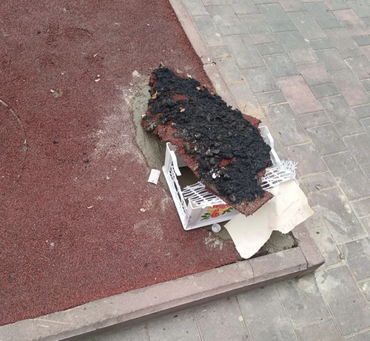 Спустя два дня Госжилинспекция сообщила, что ремонт выполнен. Однако на присланных женщиной фотографиях видно, что ремонтники ограничились тем, что залили дыру бетоном, а сверху водрузили обратно тот же ящик и куски старого покрытия.