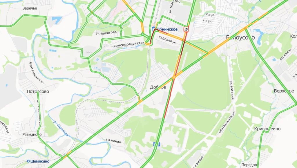 Очевидцы сообщают, что затруднено движение в сторону Москвы. Ситуацию осложняет то, что в этом месте проходят работы по реконструкции дороги.