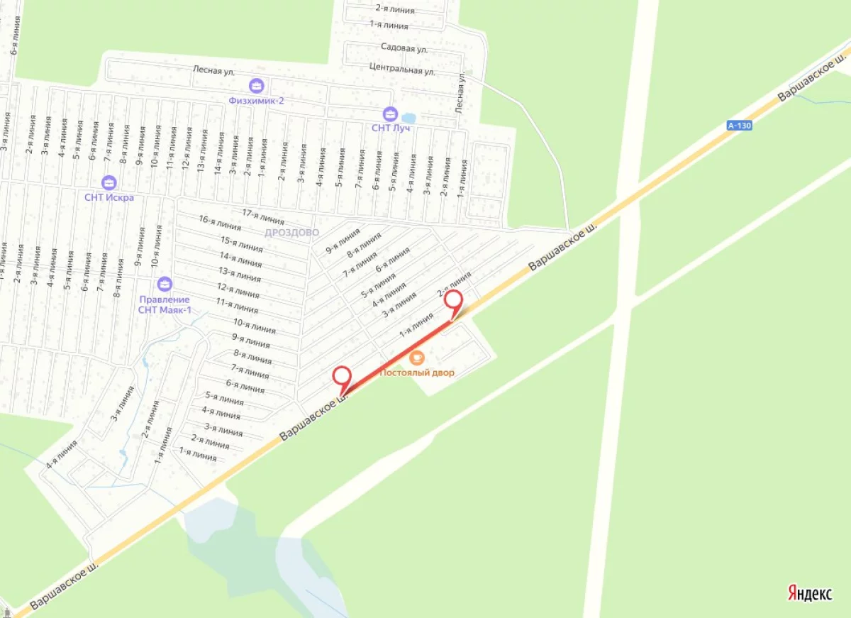 Временно не работают фонари у населенного пункта Дроздово на федеральной трассе А130.