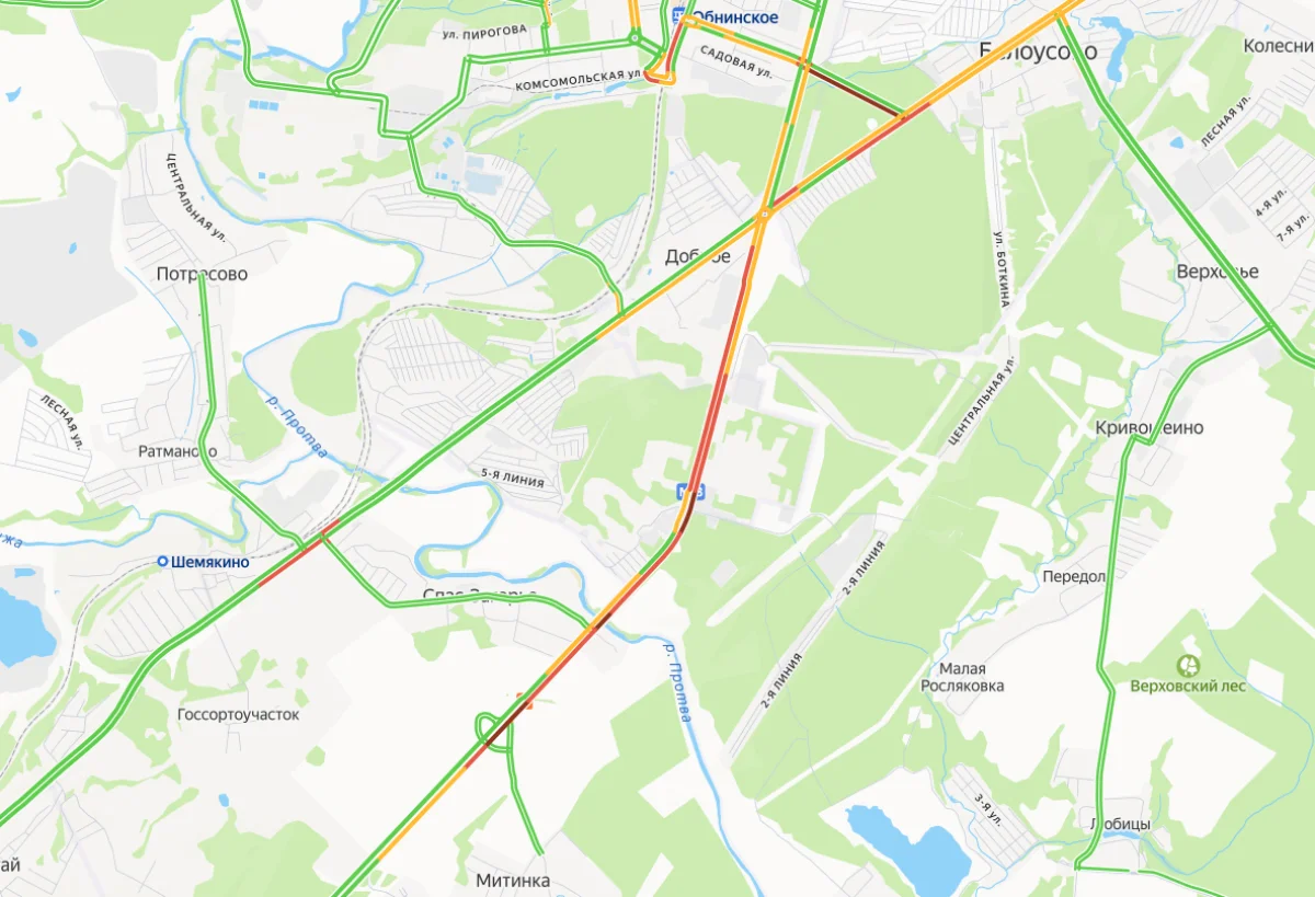 Днем в четверг, 6 ноября, движение затруднено на участке возле Обнинска.