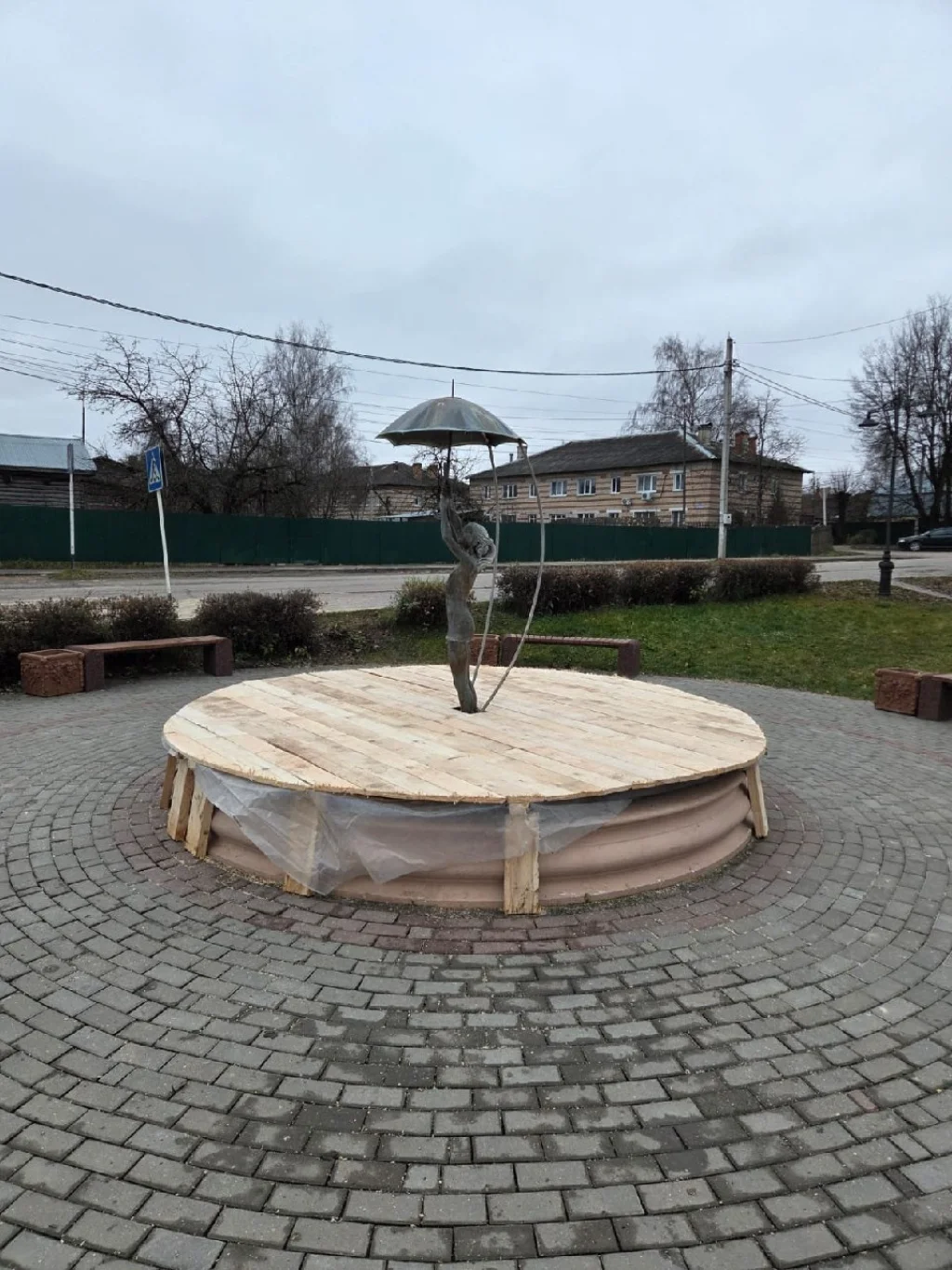 Как сообщили в районной думе, в этом году фонтан законсервировали особенно тщательно: его накрыли деревянным настилом и дополнительно защитили полиэтиленом.