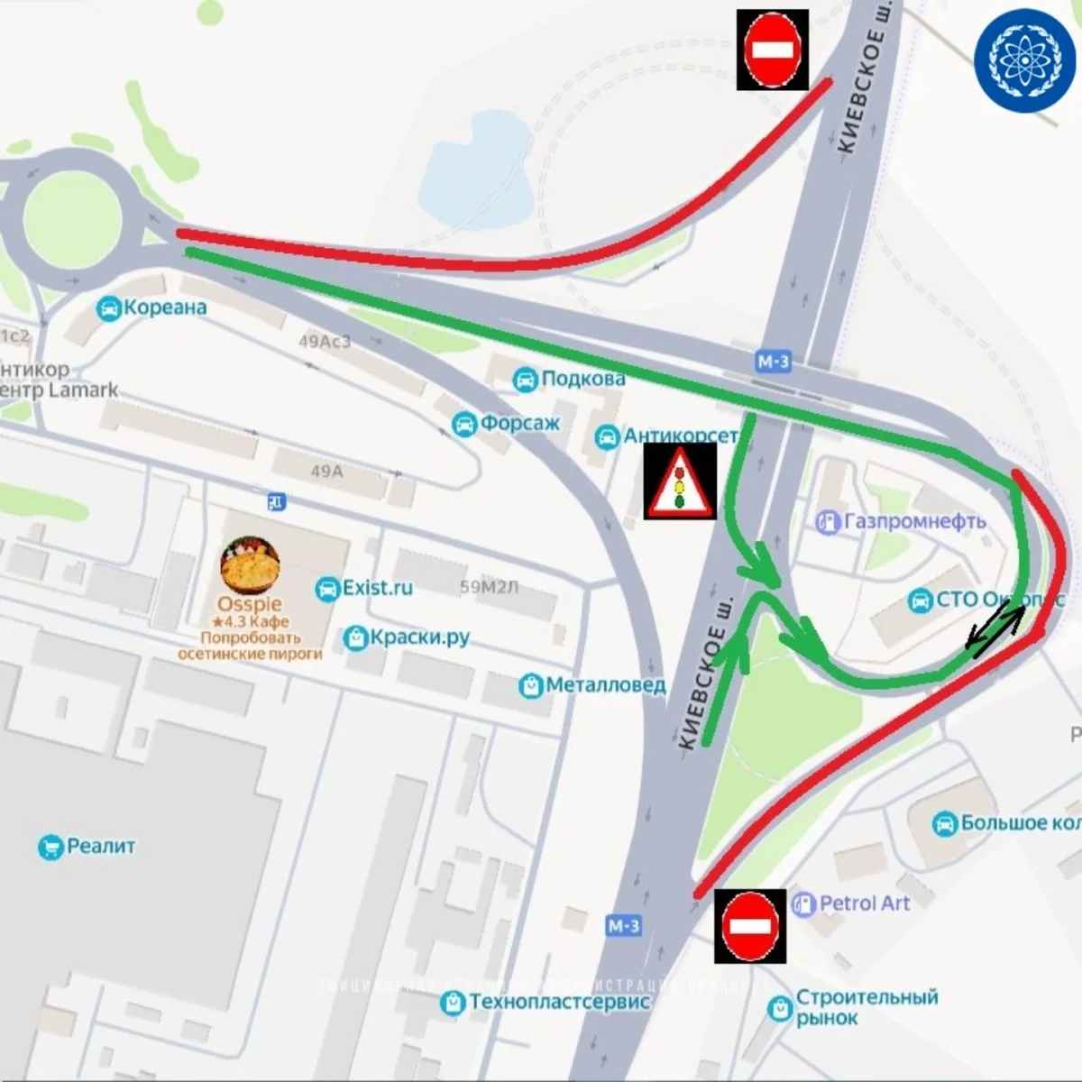 С 1 декабря для реконструкции съездов транспортной развязки «Автодор» изменит схему организации дорожного движения при въезде в город с трассы М3 «Украина».