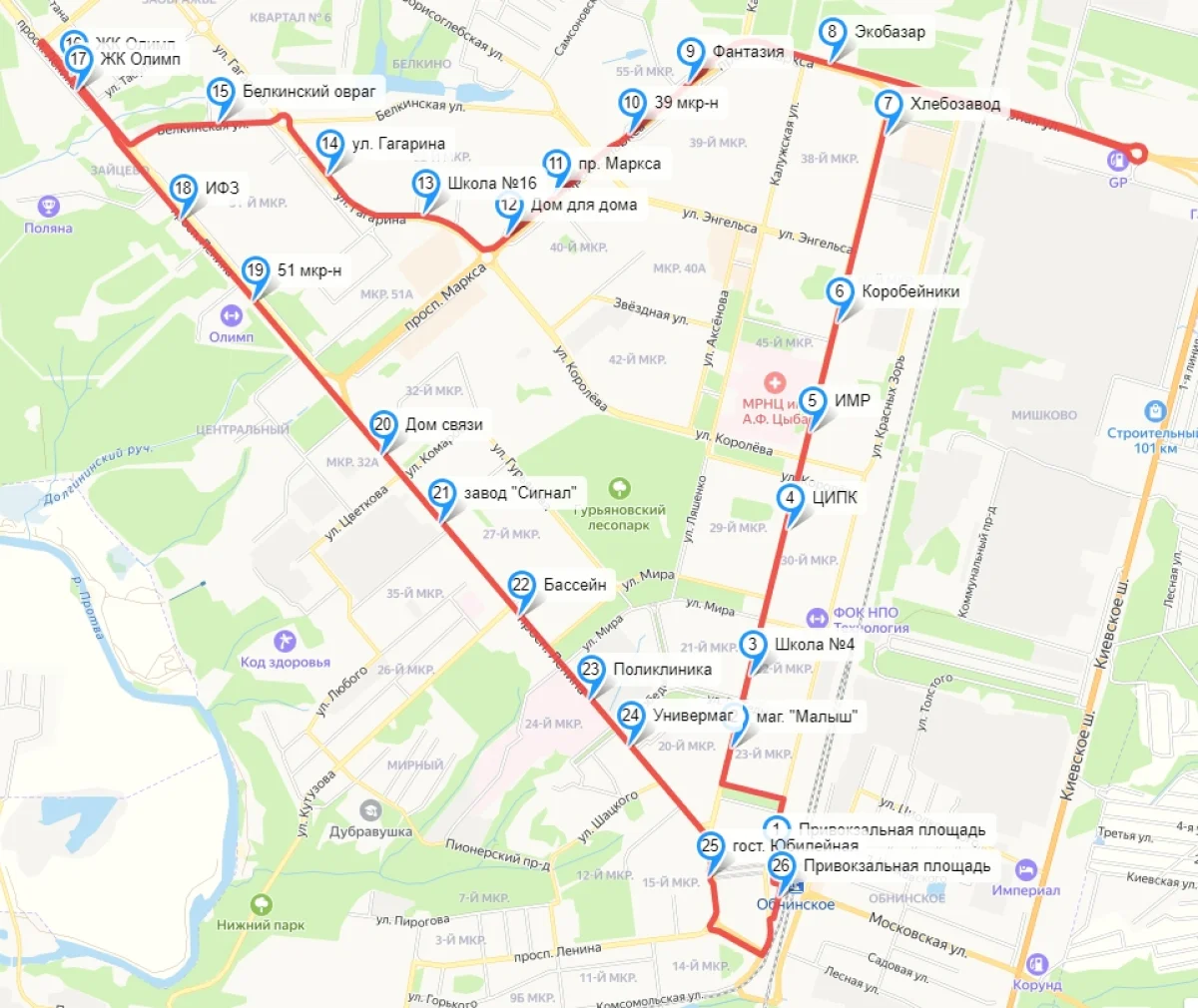 В Обнинске изменят маршруты автобусов из-за перекрытия улицы Калужской