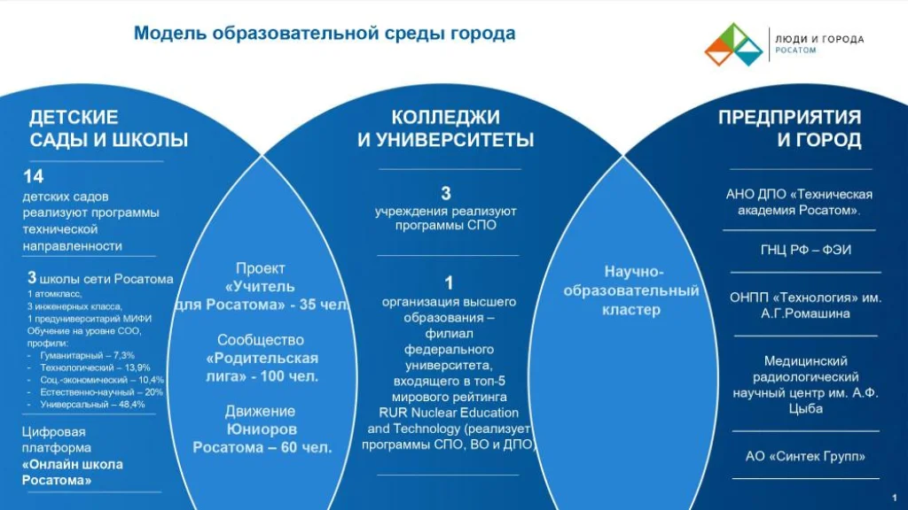 Там запустили масштабный проект, который связывает школы с ведущими научными и промышленными организациями города. Идея разработана управлением образования совместно с Корпоративной академией Росатома и уже прошла успешную апробацию.