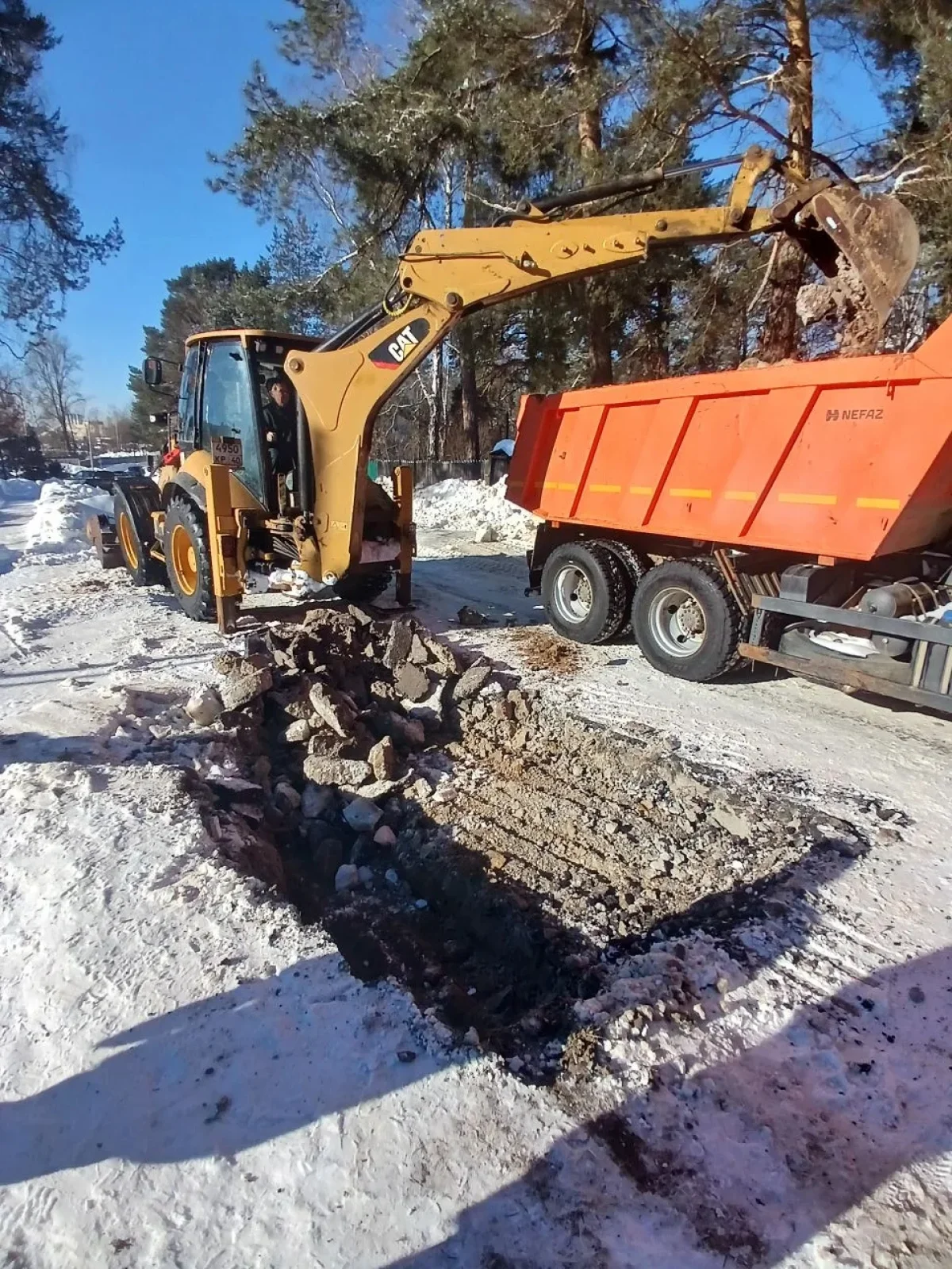 Коммунальщики устраняют утечку на водопроводе.