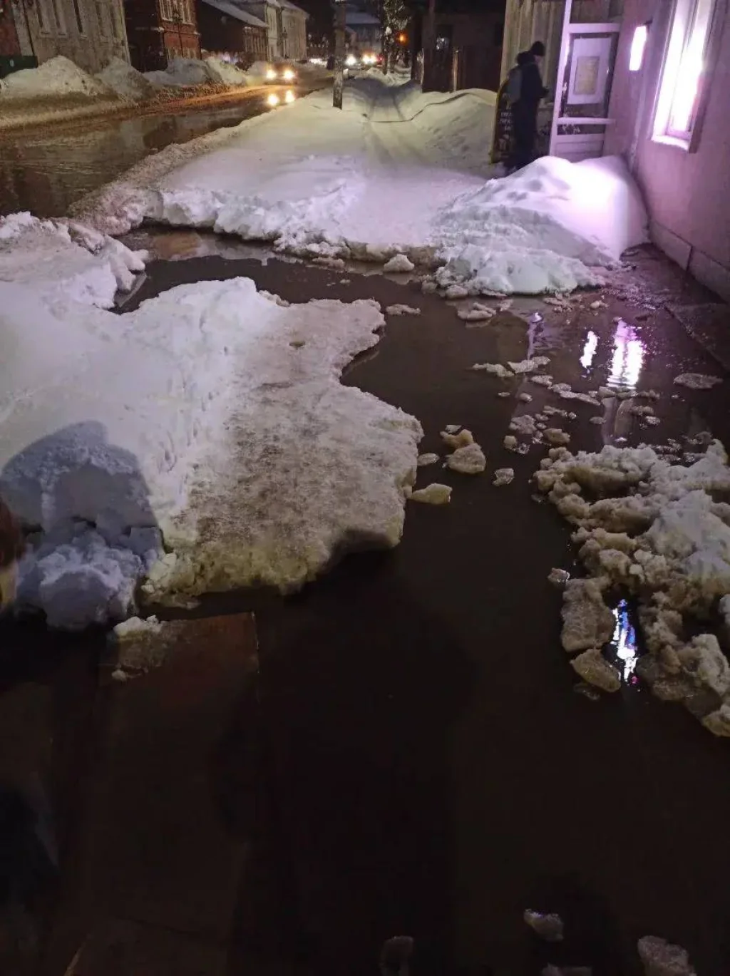 На улице большая лужа.