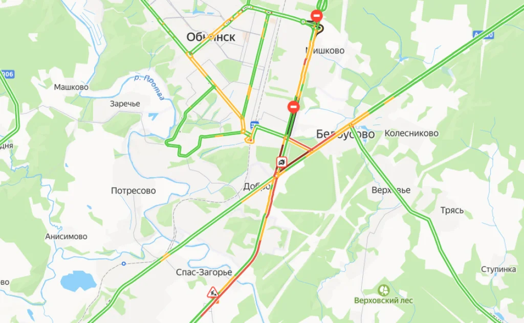 По трассе М3 пробка от Митинки в сторону Обнинска растянулась на пять километров.