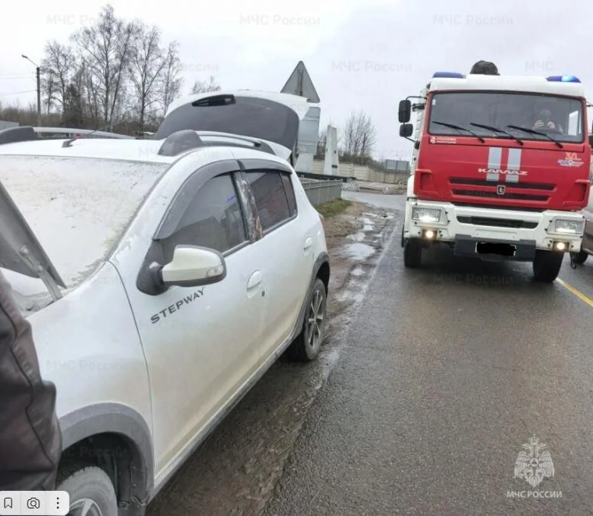По предварительной информации, около 16:30 вспыхнул моторный отсек автомобиля «Рено».