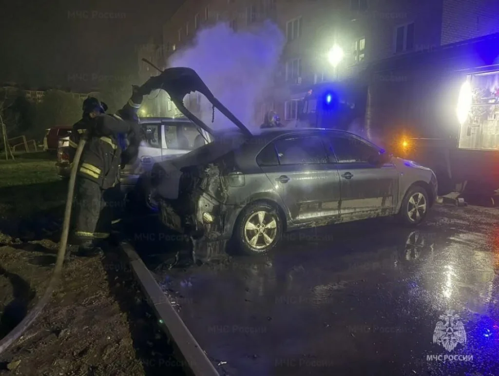Около 00:15 вспыхнул автомобиль, припаркованный у многоквартирного дома на улице Кооперативной.