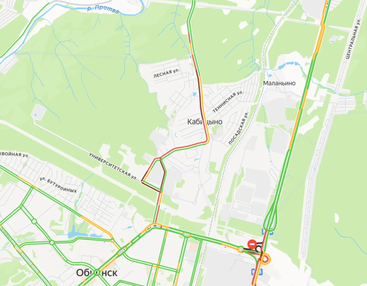 Пробка в сторону Обнинска растянулась уже почти на пять километров.