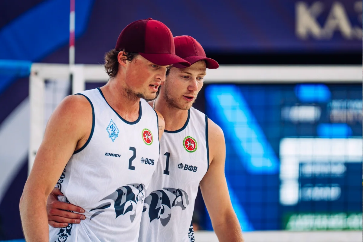 Первая пара ВК «Обнинск» добилась двух побед. Дмитрий Веретюк и Федор Сабаев переиграли спортсменов из Санкт-Петербурга и Ярославля. Наши парни пробились в 1/4 финала, где 25 апреля начнут свой матч в 14:50.