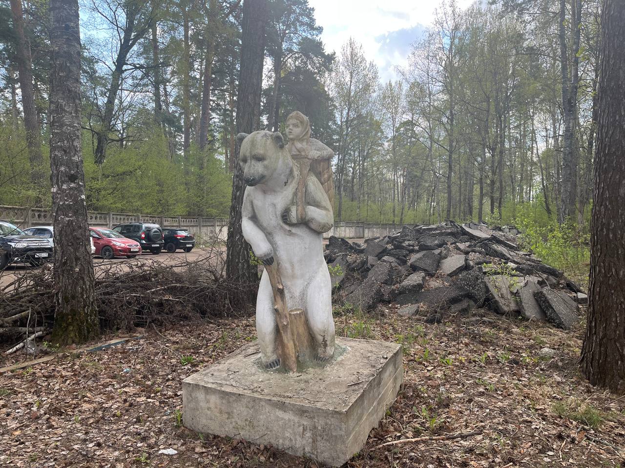 Как по иронии, на территории областной больницы стоит старая скульптура: медведь несет на спине короб с Машей, а вокруг - недоступная среда.