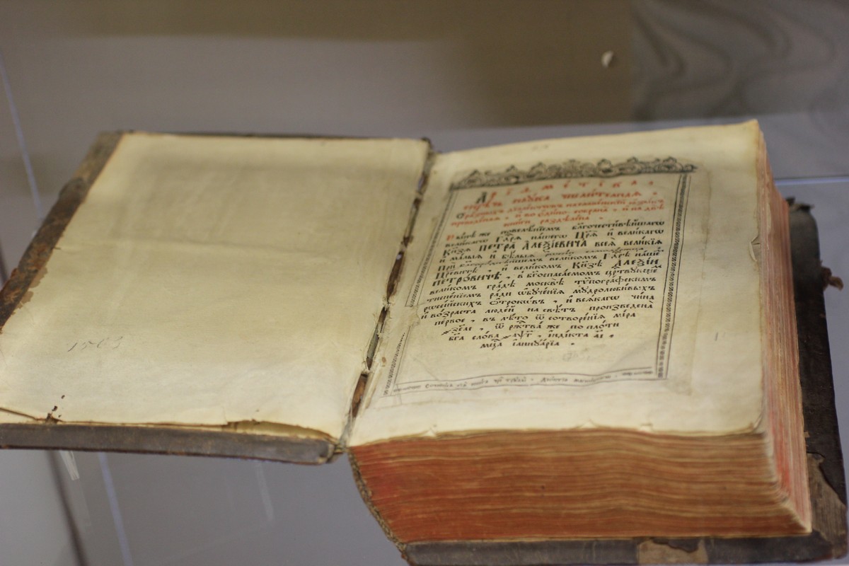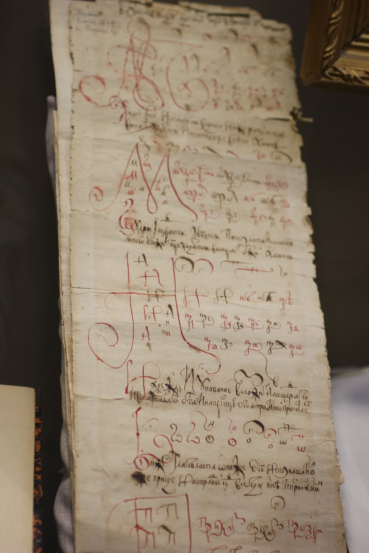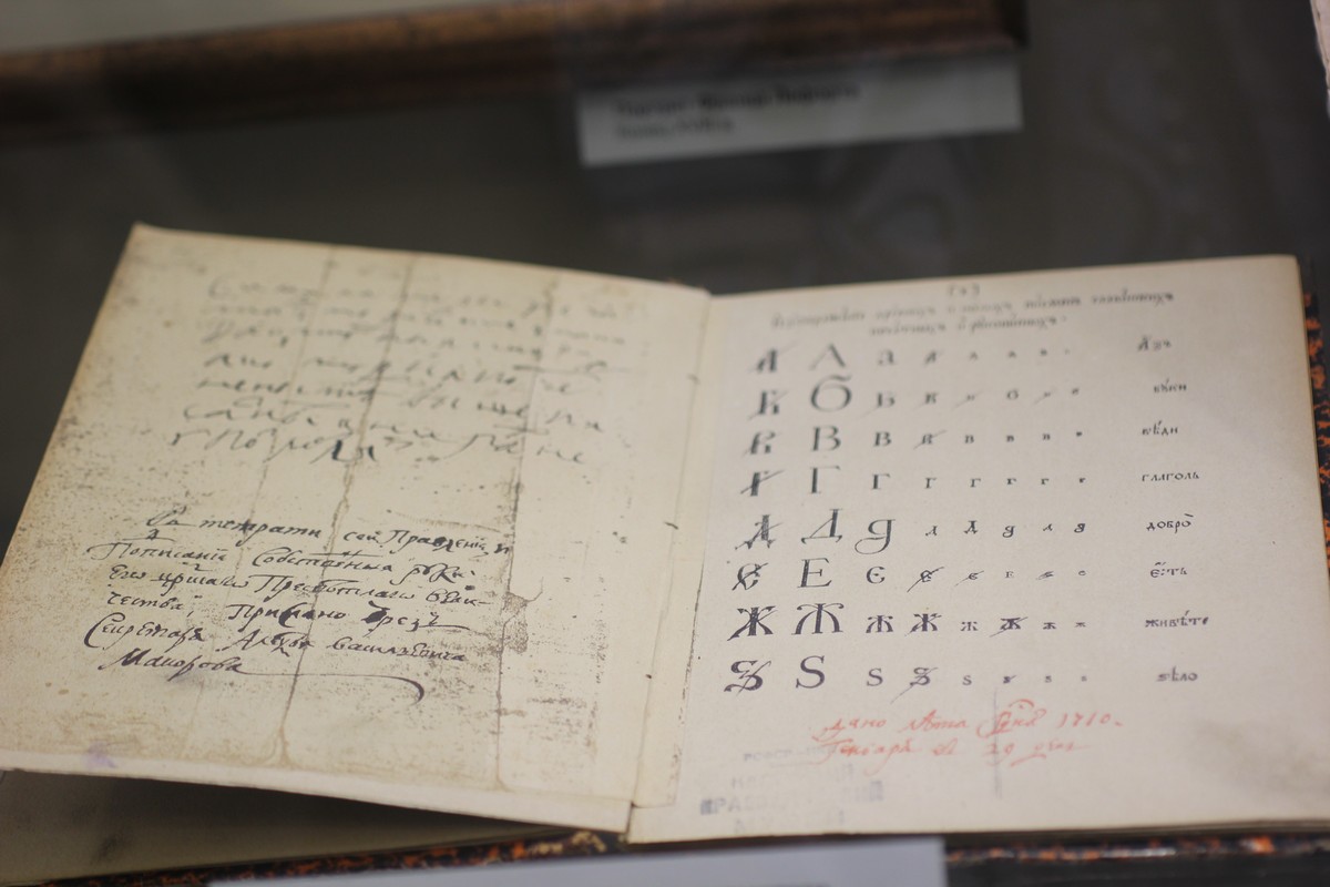 В Калуге показали старинные учебники, в том числе азбуку, правленую рукой Петра I
