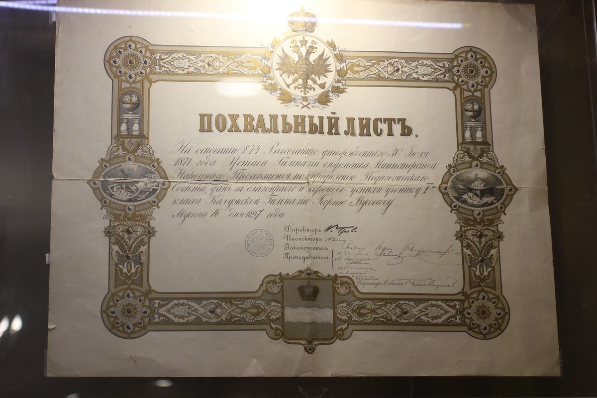 Увидеть можно старинные азбуки, арифметику Магницкого, личные вещи Циолковского, Чижевского, фотографии учителей Николаевской гимназии. Все эти редкие экспонаты хранятся в Калужском областном музее-заповеднике.