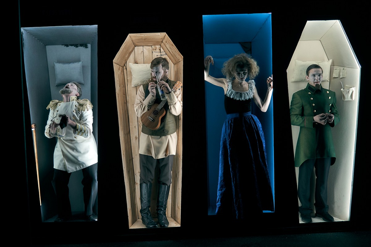На Малой сцене идёт мистический спектакль «Бобок» по Достоевскому, который поставил Тришин. Главное, чтобы ночью потом такое не приснилось.