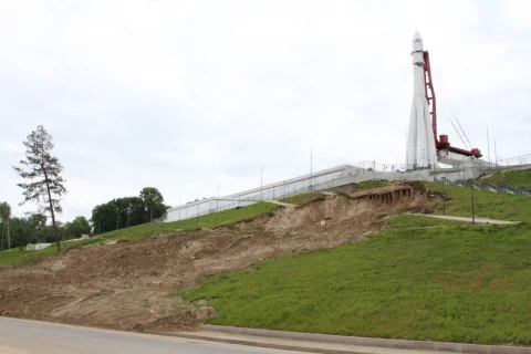 Продолжаются многочисленные разговоры по поводу оползня у музея истории космонавтики. Действительно, сегодня внешний вид может вызвать тревогу. Оголенные сваи смотрятся апокалиптично.