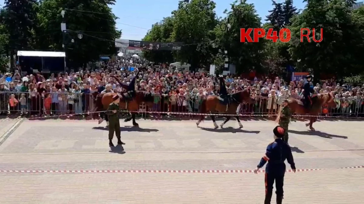 Казаки на Театральной площади Калуги показали мастерство джигитовки и фланкировки
