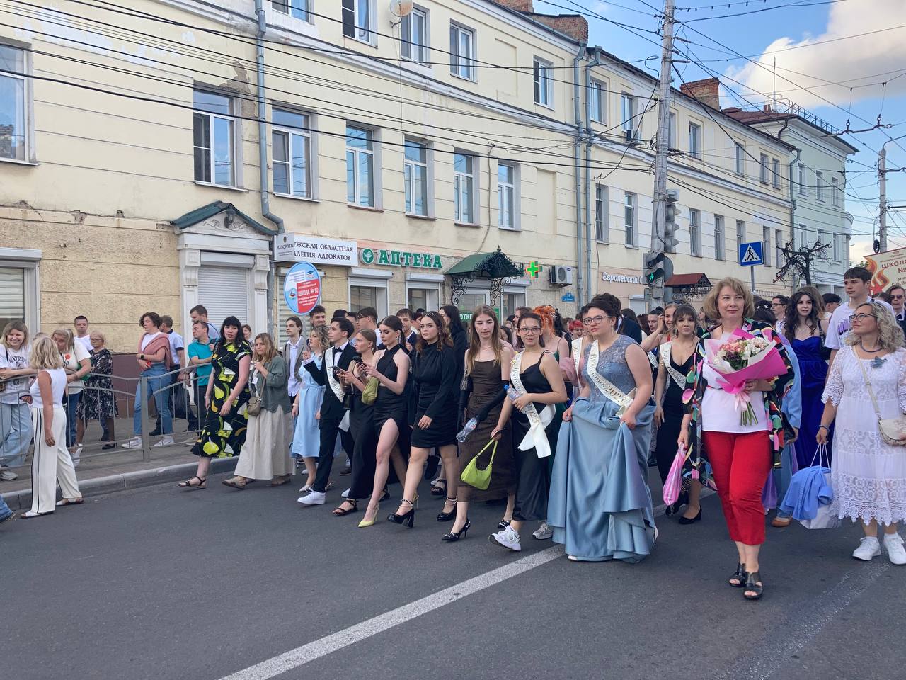 Затем выпускники прошагали до Городского парка культуры и отдыха: они прошлись по улице Кирова, Ленина, свернули на площадь Старый торг и направились по своему маршруту отмечать вступление во взрослую жизнь.