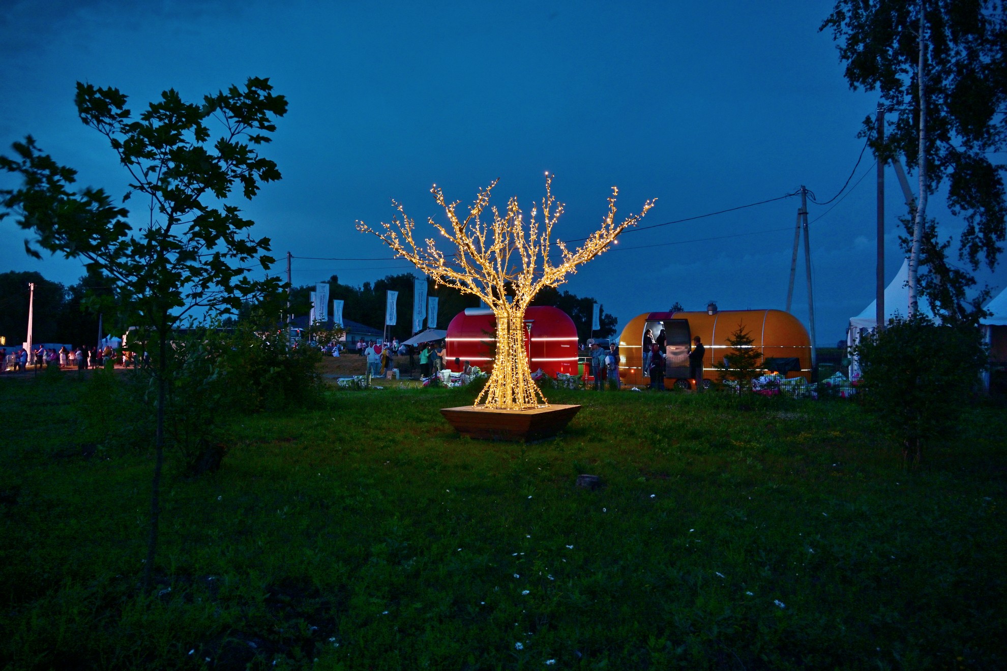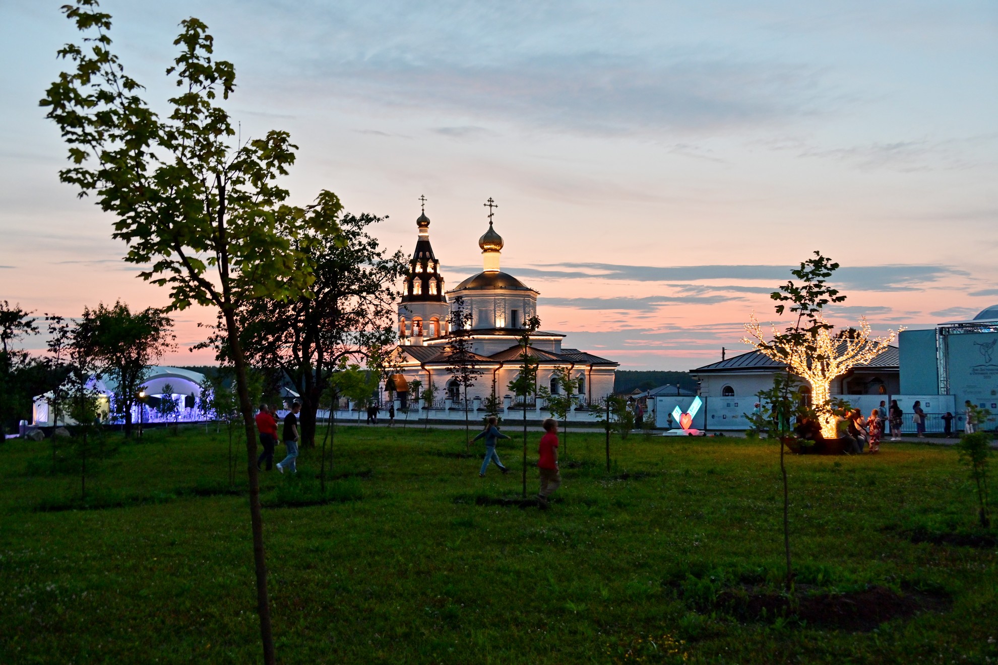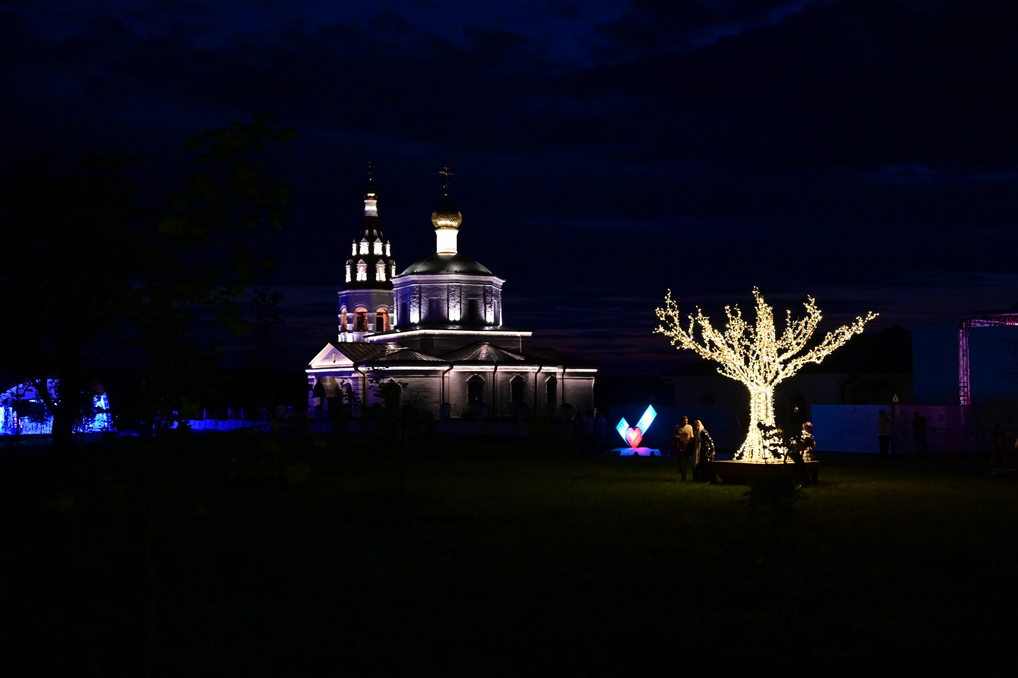 Как стемнело, на одной из локаций праздника - в селе Губино близ Оптиной пустыни - включили шикарную подсветку.